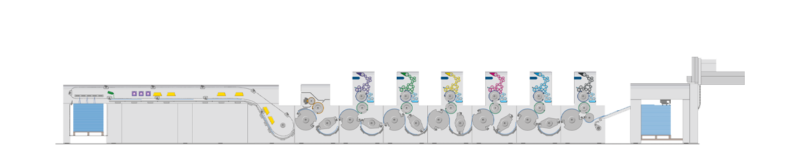Simultaneous Plate Loading drastically reduces make-ready times. Plate exchange, blanket cylinder and back cylinder washing can be done simultaneously in all printing units in less than 4 minutes.