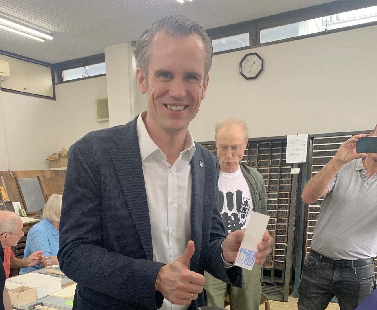 During the visit, Mayor Schwenke and approximately 20 members of the delegation had the rare opportunity to explore traditional Japanese craftsmanship at Sakurai Printing Inc., a company founded in 1924 and currently celebrating its 100th anniversary. They participated in “watoji,” a form of traditional Japanese bookbinding, selecting from exquisite Japanese washi paper and creating letterpress bookmarks—a hands-on cultural exchange that left a lasting impression on the delegation.